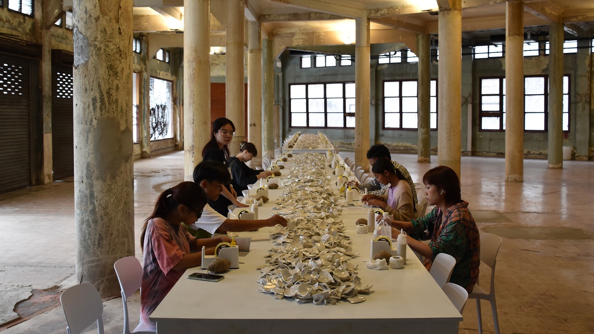 How do we make a place? In partnership with A4 Arts Foundation and proyectoamil, Kunsthalle Bangkok presented MEND PIECE by Yoko Ono.The work involves participants mending shattered ceramic objects using simplistic materials like glue, string, and tape. The core aim was to incite communal mending – turning ceramic pieces into the sum of many parts, turning an abandoned building into Kunsthalle Bangkok, turning individuals into a community.