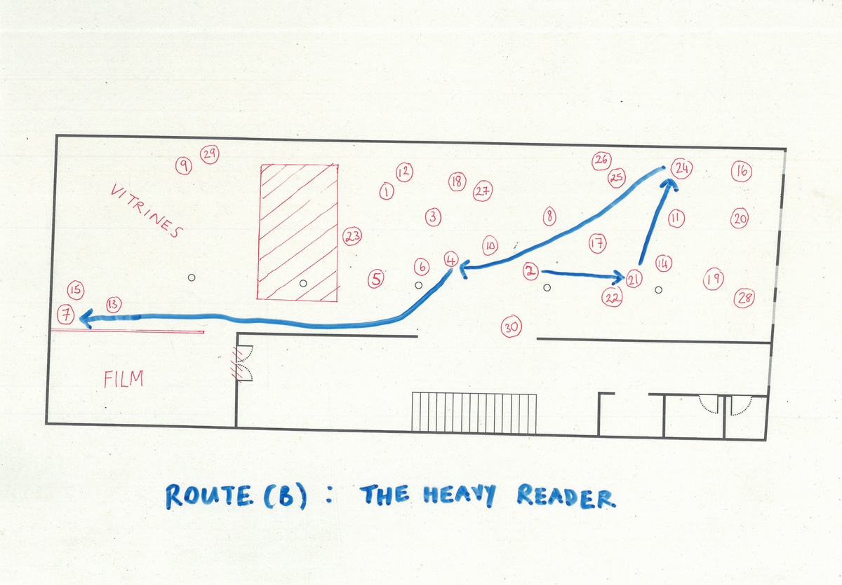 The ‘Heavy Reader’ route is a walk through the longer texts in the notebooks. It includes lectures on History vs. The Studio, peripheral thinking, and some of the listed sources of Kentridge’s ‘words’.