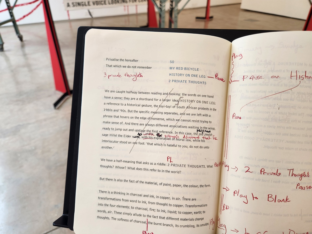 Tracing a studio route through notebooks from William Kentridge’s History on One Leg (2024) at A4. – March 5, 2025