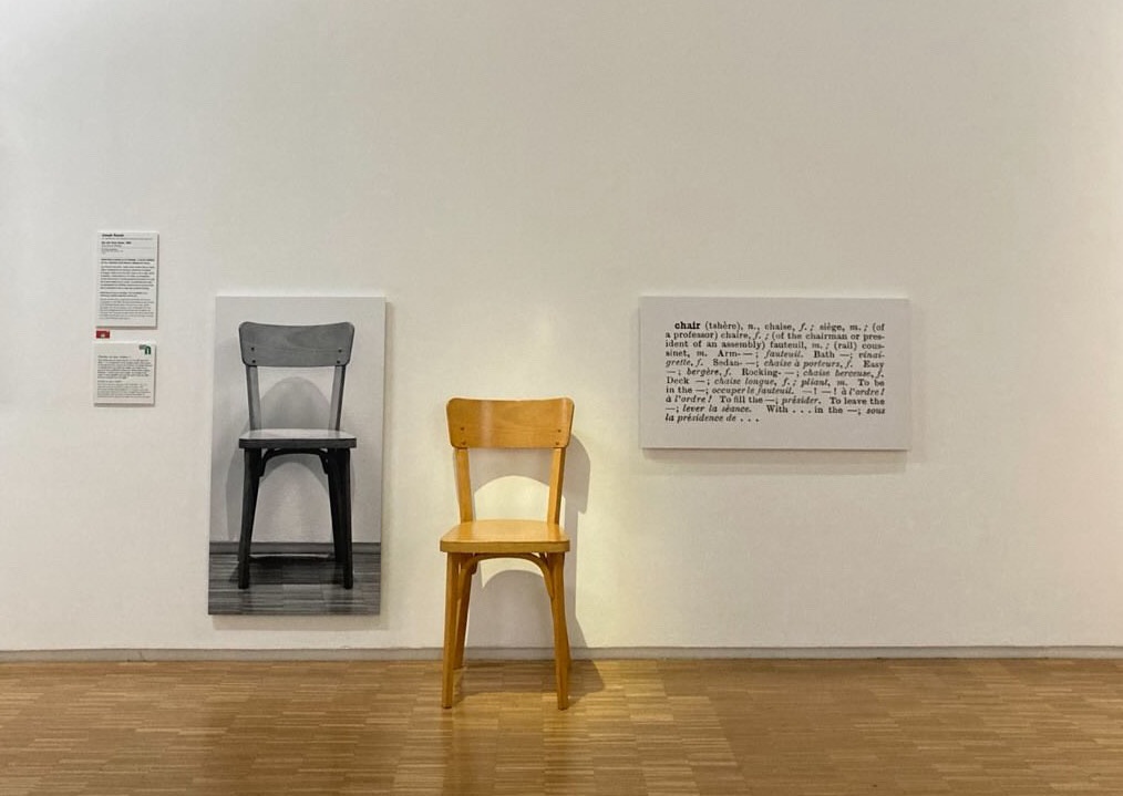 “A chair sits alongside a photograph of a chair and a dictionary definition of the word chair. Perhaps all three are chairs, or codes for one: a visual code, a verbal code, and a code in the language of objects, that is, a chair of wood. But isn't this last chair simply…a chair?”– excerpt on Joseph Kosuth’s One and Three Chairs (1965) from The Museum of Modern Art, MoMA Highlights, New York: The Museum of Modern Art, revised 2004, originally published 1999, p. 257.[verb: is]