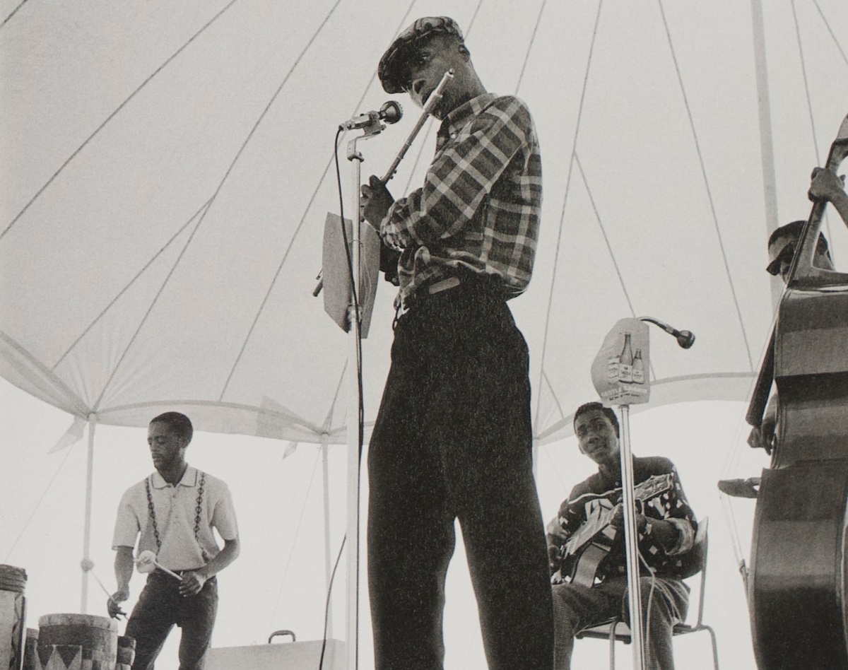 Pictured in ‘Black Ingenuity’ are the Malombo Jazz Men (later named the Malombo Jazz Makers) at the 1964 Castle Lager Jazz Festival in Orlando Stadium in Soweto, organised by Union Artists. The band was made up of Philip Tabane, Abbey Cindi, and Julian Bahula. Bahula and Cole were childhood friends.