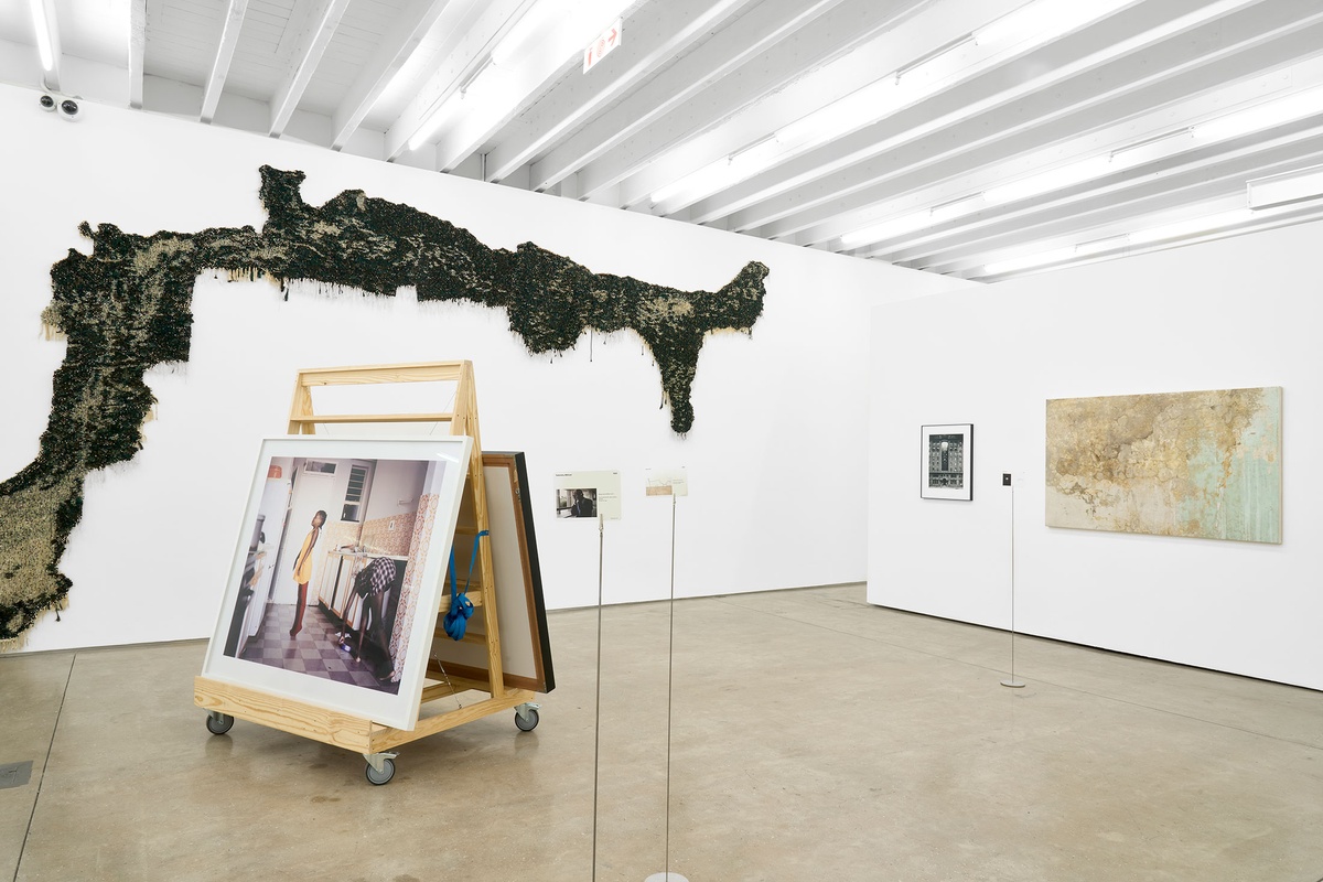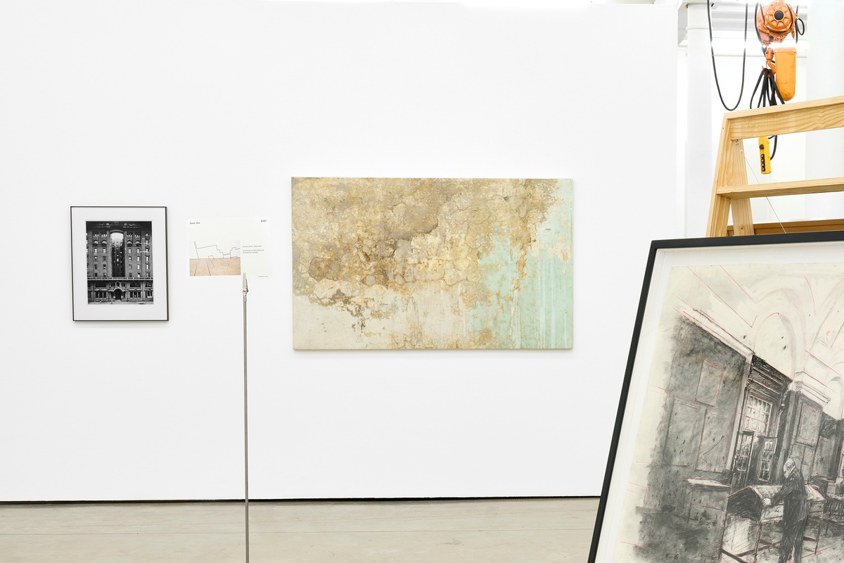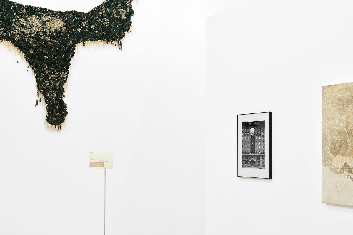 From the very strata of plaster and paint lifted from a wall and applied to canvas, to the intricately embellished translation of worn vinyl into woven composition, each of these works assumes a different distance from its subject, picturing places or excerpting their material features. Where some pursue a visual veracity, others offer a more tactile or lyrical engagement with place.