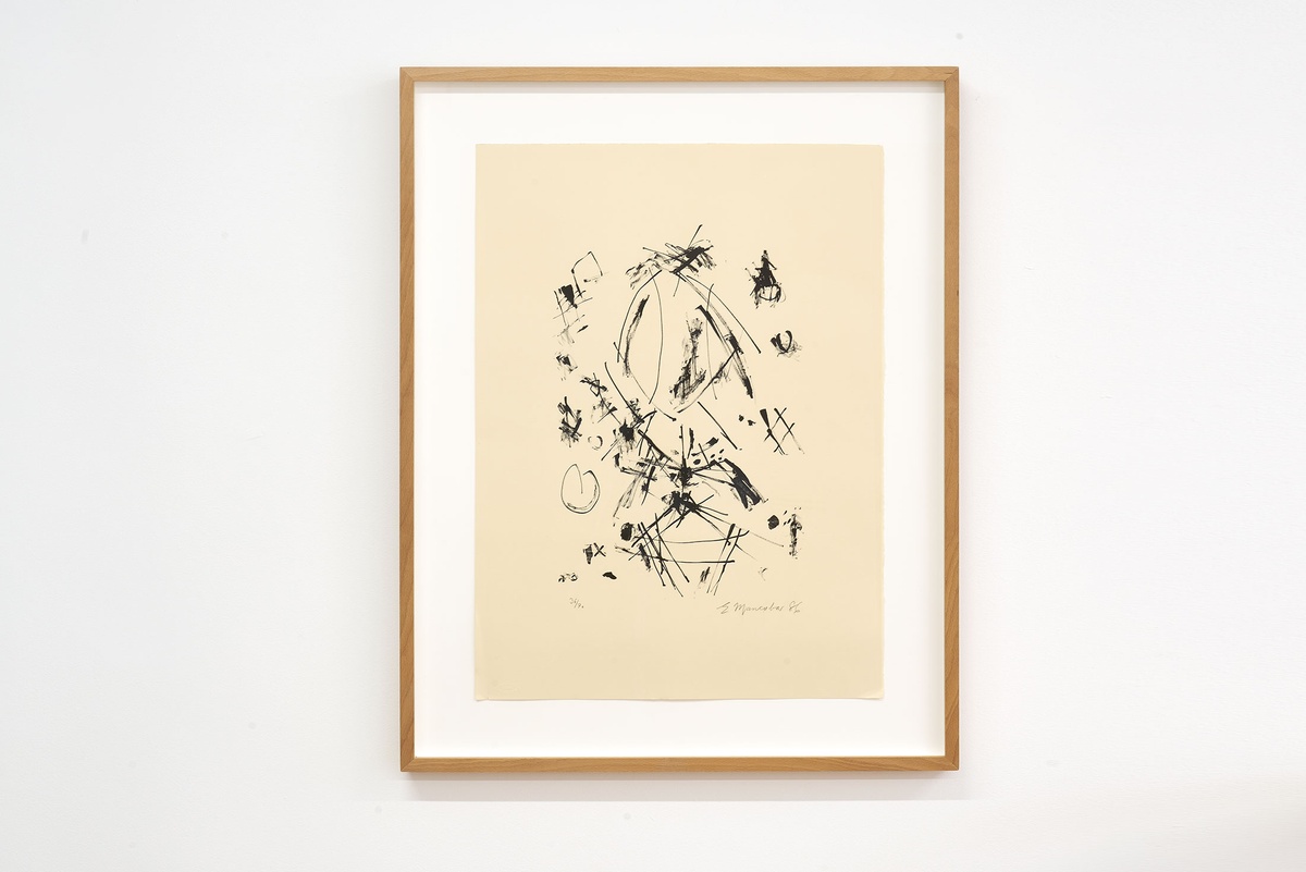 In the film, Mancoba’s expression is distant when he searches for a phrase that approximates this “unspeakable” experience, expressed in the work. The decisive pauses in Mancoba's speech recall a fundamental painting approach he later described as marks made with the “lightest means possible”. That is, an approach reduced to essential gestures landing sparsely on the surface.