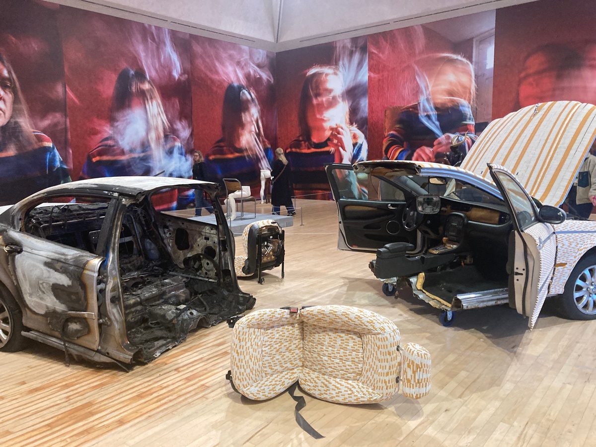 Mitchell and I began our trip at Sarah Lucas’s retrospective at Tate Britain. Given that the ‘YBAs’ are now established artists, it was interesting to see how Lucas has made ambitious works that still feel relevant and subversive. The permanent collection exhibition had also recently been rehung with more contemporary works that matched our research interests, and art from former British colonies which expanded the ideas held by the category of ‘historical painting’.