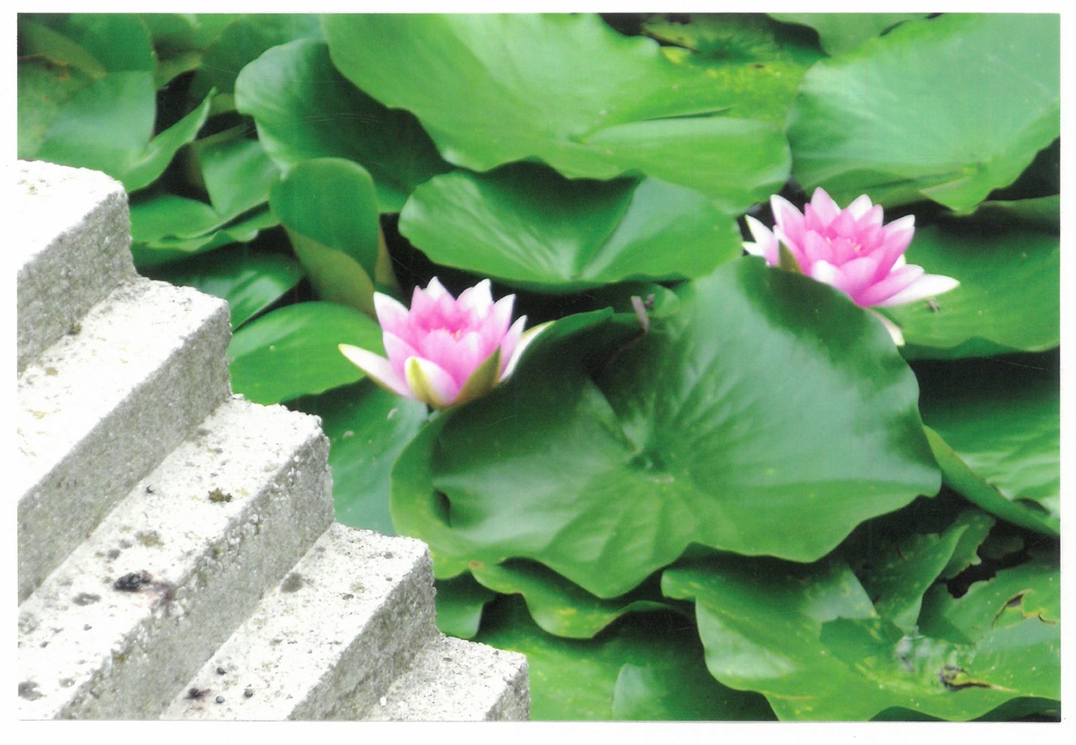 By way of ending, a final offering: a photograph given without inscription – two lilies, cement detailing, green.