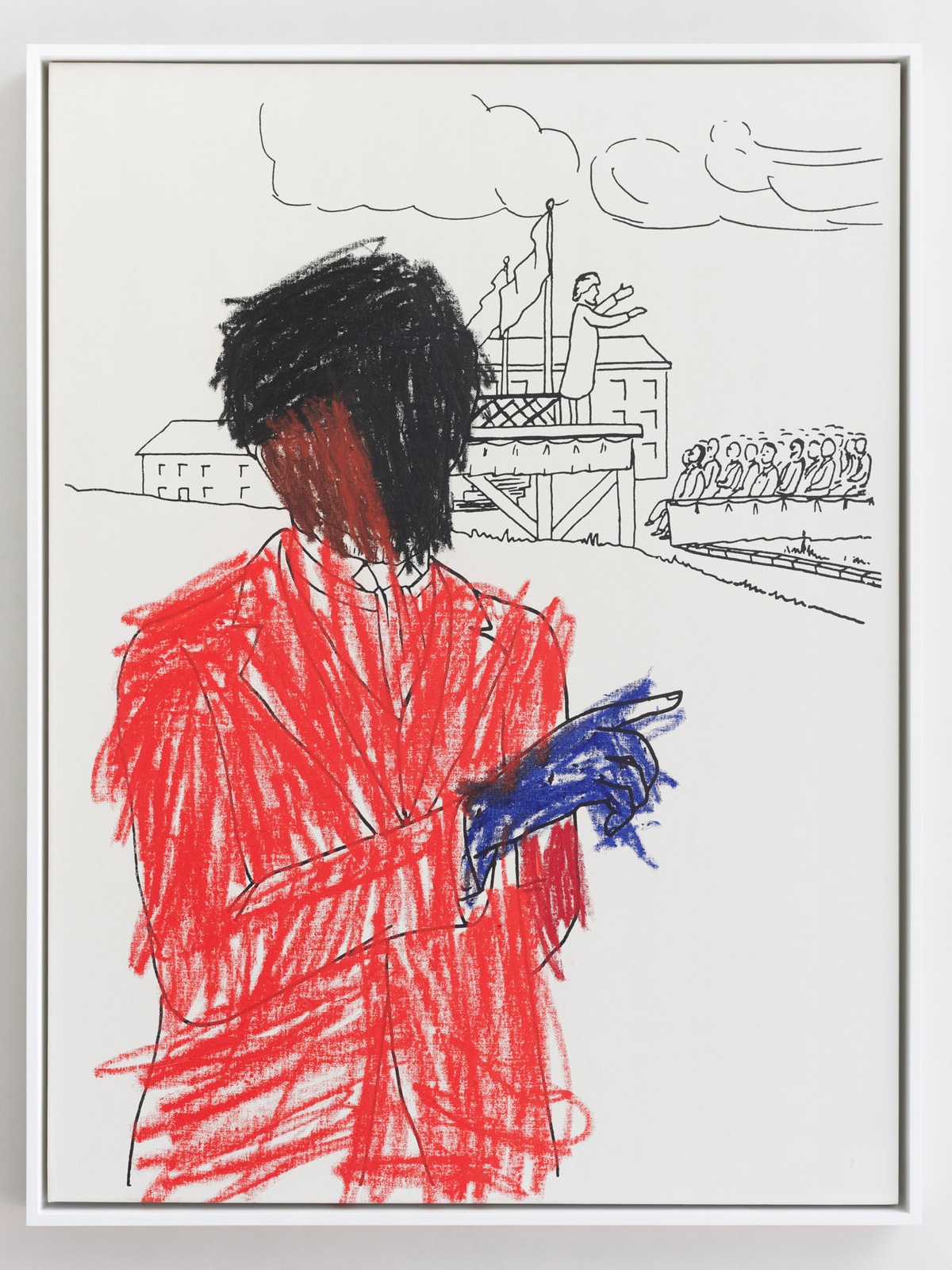 Named again, an image of a historical figure denied by a child's eclipsing crayon.