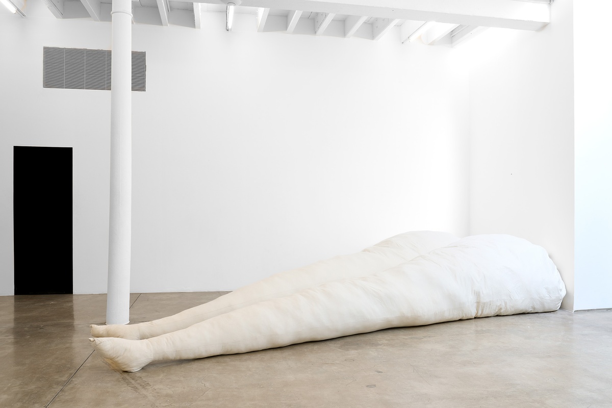 Thirteen years ago, Jared Ginsburg began experimenting with ways to enlarge and enliven his nude drawings into works which could fill three-dimensional space. To maintain the solitude of his studio while working on a larger scale, he asked his now-wife Stephanie Anastasopoulos to teach him how to sew, exhibiting the first of his fleshy canvas limbs and torsos in a solo exhibition titled Body Parts (2013).