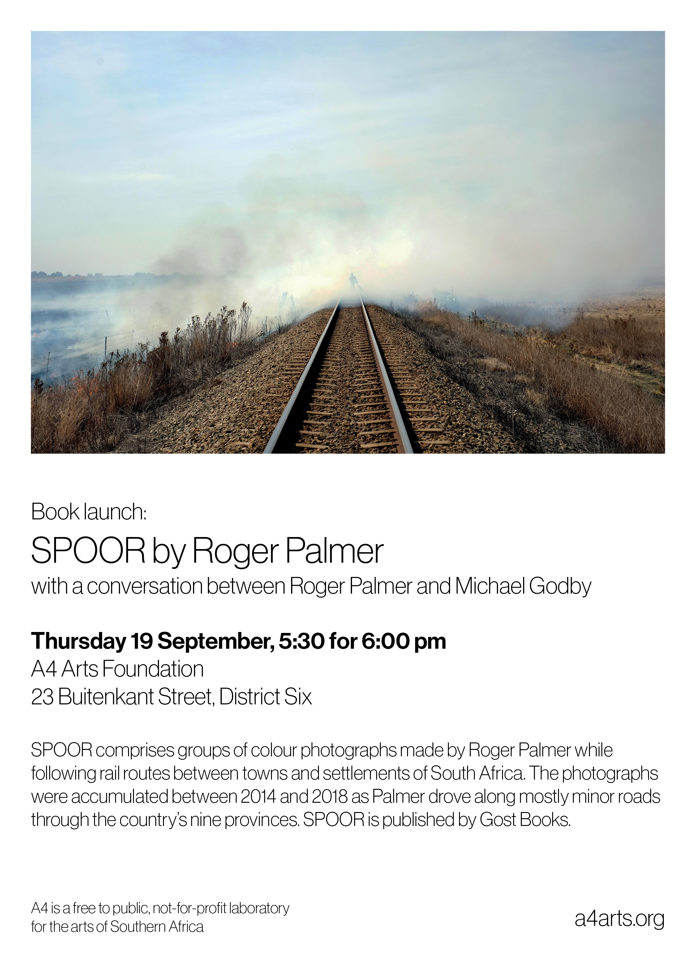 The launch of SPOOR by Roger Palmer, with a conversation between the author and Michael Godby.