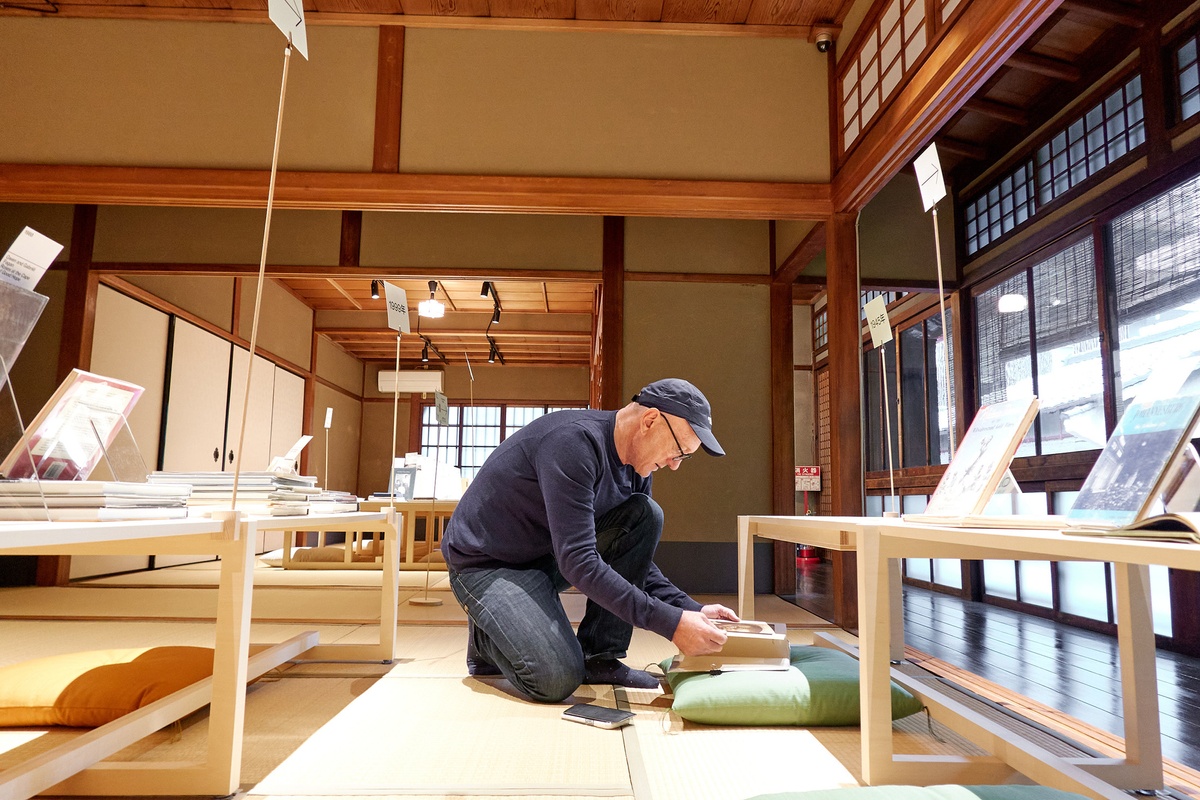 Process: Setting up the upcoming installation Photo Book! Photo-Book! Photobook!, Kyotographie curated by Sean O'Toole, April 17–May 17, 2026. Image © Shinsuke Tamaki and Kyotographie.